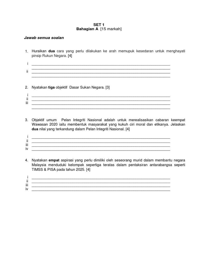 Koleksi Soalan Struktur from imgv2-1-f.scribdassets.com Latar belakang pelan integriti nasional (pin)menyedari tentang pentingnya integriti di kalangan masyarakat, kerajaan telah menyediakan dan melaksanakan pelan integriti nasional (pin). Pelan integriti nasional adalah satu pelan atau rancangan yang dirancangkan serta dilancarkan oleh kerajaan malaysia dengan fokus utamanya untuk menanam dan memupuk budaya etika dan integriti di kalangan semua lapisan masyarakat malaysia. Pelan integriti negara (pin) bahagian ilatarbelakang, konsep, objektif dan sasaran. Objektif pin ialah memberikan hala tuju dan bimbingan pelbagai sektor supaya mereka dapat bekerjasama dalam usaha besar membina masyarakat yang bersatu padu, berharmoni, berintegriti, bermoral dan beretika. Hakikat kehidupan masyarakat malaysia yang terdiri daripada pelbagai kaum dan agama adalah suatu kurniaan dan kelebihan untuk dimanfaatkan. mencapai objektif dan sasaran pin adalah 1 agenda utama negara.dirujuk sebagai agenda integriti. merealisasikan cabaran keempat ,hasrat wawasan 9. Objektif sebagai jentera pelaksana pelan integriti nasional (pin) ke arah membangunkan sebuah bangsa malaysia yang berintegriti, berdaya tahan dan menghayati.