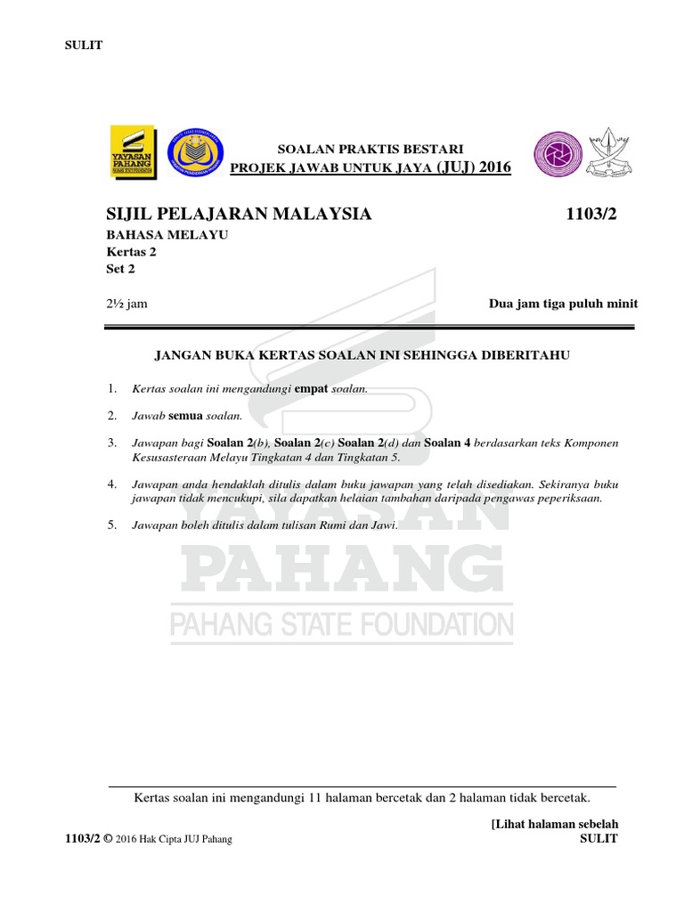 Format pentaksiran bahasa melayu (kod 1103) sijil pelajaran malaysia mulai 2021. Pemahaman dan tatabahasa other contents: Jangan buka kertas soalan ini sehingga diberitahu. Soalan peperiksaan percubaan kerta bahasa melayu 2, mrsm 2019. Add to my workbooks (0) download file pdf embed in my website or blog add to.